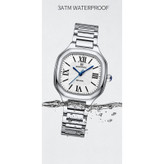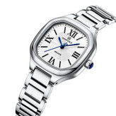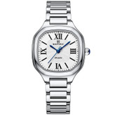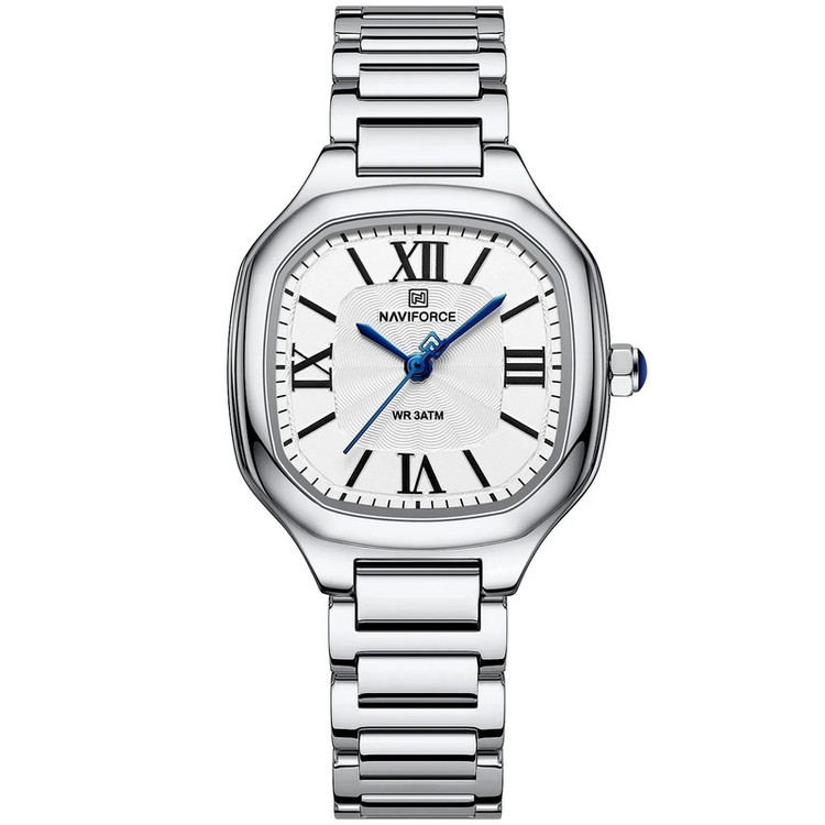 این مدل از ساعت مچی های زنانه و دخترانه برند نیوی فورس بر اساس سبک کلاسیک و اسپرت و روزمره بوده و دارای طراحی بسیار زیبایی می باشد.شیشه ی معدنی ضد خش و بند و بدنه ی این ساعت استیل بسیار باکیفیت رنگ ثابت و ضدخش بوده که از رنگ نقره ای در آن استفاده شده است و جزو ساعت های خوش فروش برند نیوی فورس است و جزو بهترین و مناسب ترین ایده ها برای کادوی زنانه و دخترانه در مناسبت های مختلف میباشد. طراحی متفاوت شکل بدنه ی این ساعت که چند ضلعی است چشم هر بیننده ای را مینوازد. این ساعت دارای 30متر مقاومت در برابر آب است. همچنین روی قفل و روی سرکوک ساعت و روی عقربه ی ثانیه شمار و صفحه ی ساعت و پشت درب برند نیوی فورس حک شده است. و دارای هولوگرام پشت درب و دفترچه نیز میباشد. این ساعت زنانه نیوی فورس در جعبه ای باکیفیت و شیک و کادویی خدمت شما ارسال میگردد.