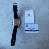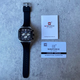 این مدل از ساعت مچی های مردانه برند نیوی فورس بر اساس سبک اسپرت و روزمره بوده و دارای طراحی بسیار زیبایی می باشد.شیشه ی معدنی ضد خش و بند رابر بسیار باکیفیت و بدنه ی این ساعت استیل رنگ ثابت بوده که از ترکیب رنگ های مشکی و نقره ای در آن استفاده شده است و جزو ساعت های خوش فروش برند نیوی فورس است و جزو بهترین و مناسب ترین ایده ها برای کادوی مردانه در مناسبت های مختلف میباشد. طراحی متفاوت شکل بدنه ی این ساعت چشم هر بیننده ای را مینوازد.همچنین این ساعت سه موتوره کرنوگراف بوده و عقربه های کوچک آن کرنومتر است و دارای نمایشگر روزهای ماه و عقره های شب تاب نیز میباشد. و دارای 30متر مقاومت در برابر آب است. همچنین روی قفل و روی سرکوک ساعت و روی عقربه ی ثانیه شمار و صفحه ی ساعت و پشت درب برند نیوی فورس حک شده است. و همانطور که مشاهده میکنید دارای هولوگرام پشت درب و دفترچه نیز میباشد. این ساعت مردانه نیوی فورس در جعبه ای باکیفیت و شیک و کادویی خدمت شما ارسال میگردد.