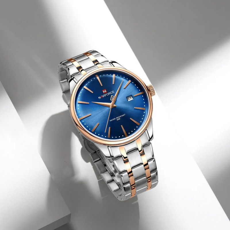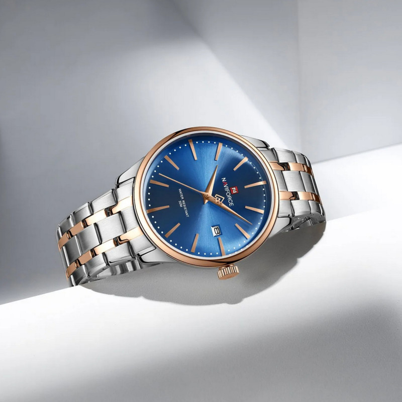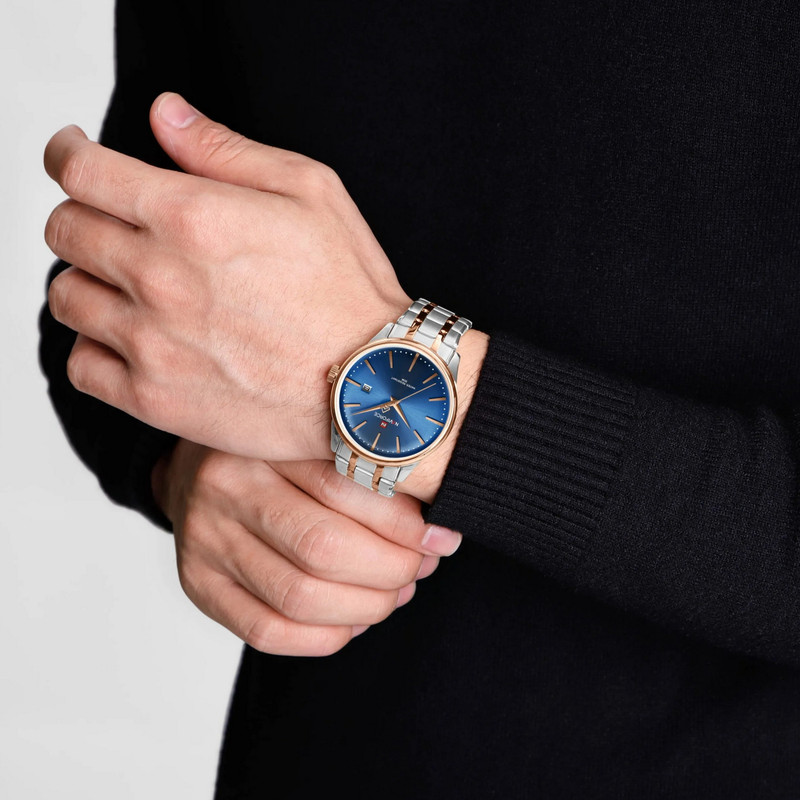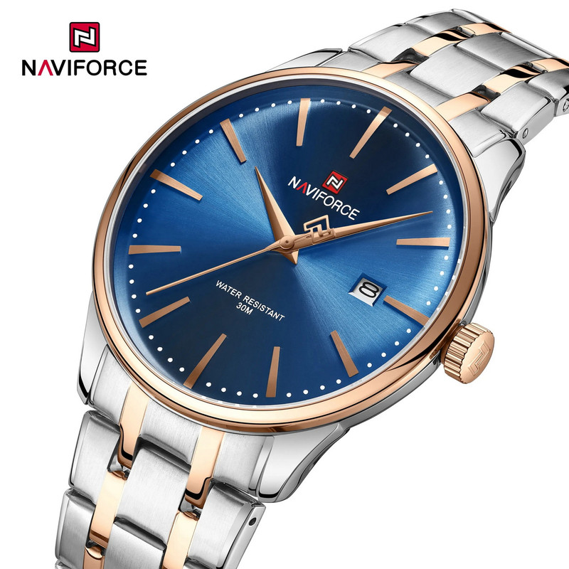 از پرطرفدارترین اکسسوریهای مردانه و زنانه، ساعتهای مچی هستند که در انواع مختلف عقربهای و دیجیتال در بازار عرضه میشوند. معمولا ساعتهای مچی دارای تقویم روزشمار نیز هستند که در دو نوع مکانیکی و کوارتز وجود دارند. ساعت مچی عقربه ای مردانه نیوی فورس مدل NF9230 جدیدترین سری نیوی فورس دارای موتور قدرتمند کوارتز ژاپنی با تقویم روزشمار است. این نوع محصول نیروی مورد نیاز خود را از طریق یک باتری تامین میکند.این ساعت دارای جنس بدنه و بند استیل ضخیم و رنگ ثابت است و قفل آن مدل پروانه ای مخفی استیل میباشد.جنس شیشه این محصول نیز معدنی تقویت شده مقاوم در برابر خراش است . طراحی ضد آب: مناسب برای شستن دست، در هوای شرجی وبارانی و پاشیدن آب به ساعت و در ضمن ساعت را نمی توان در حمام گرم استفاده کرد. این ساعت عقربهای مردانه دارای ظاهری شیک و جذاب بوده و برای استفاده در هر شرایطی کاملا مناسب خواهد بود.برند نیوی فورس بر روی صفحه،سرکوک و پشت درب ساعت به زیبایی حک شده است.ارسال کالا بهمراه کارت،دفترچه راهنما و جعبه اورجینال هاردباکس نیوی فورس طبق تصاویر و همچنین یک عدد باتری اضافه.